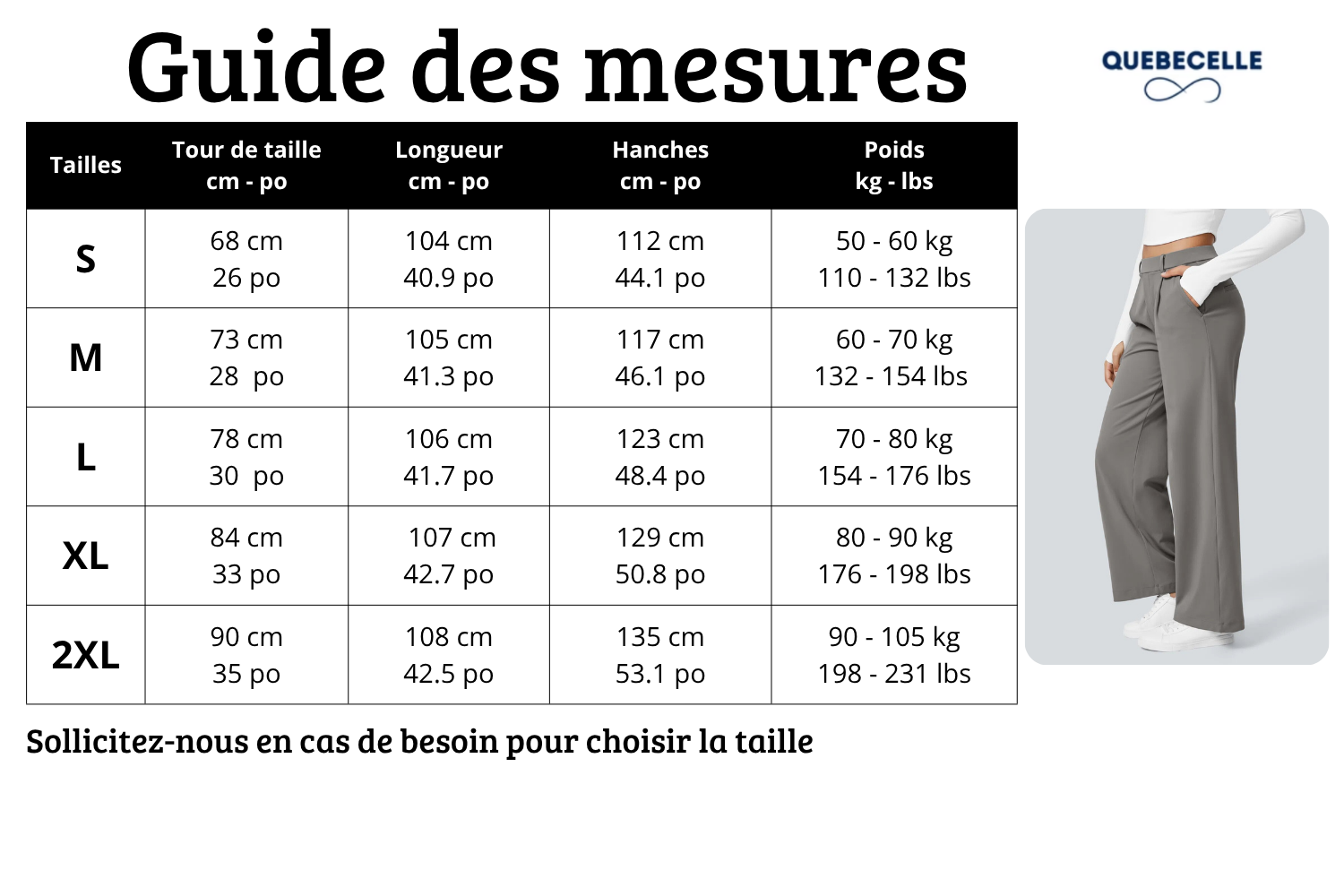 Ce pantalon est disponible dans une large gamme de tailles, allant de S à 2XL, pour s'adapter à toutes les silhouettes. Consultez notre guide des tailles pour choisir la vôtre en toute confiance.