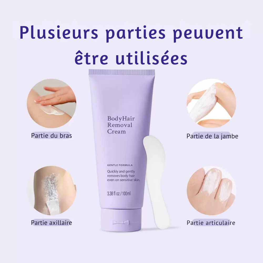 Appliquez une couche généreuse de la crème sur la zone souhaitée, laissez agir pendant 5 à 10 minutes, puis retirez à l’aide d’une spatule ou d’un gant humide. Rincez à l’eau tiède pour découvrir une peau douce et lisse.