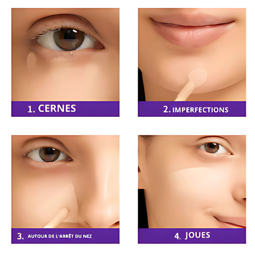 Transformez votre routine beauté avec l'anti-cernes GlamTouch™. Sa formule haute couvrance dissimule cernes, taches et rougeurs instantanément, révélant un teint uniforme et éclatant, sans effet masque.