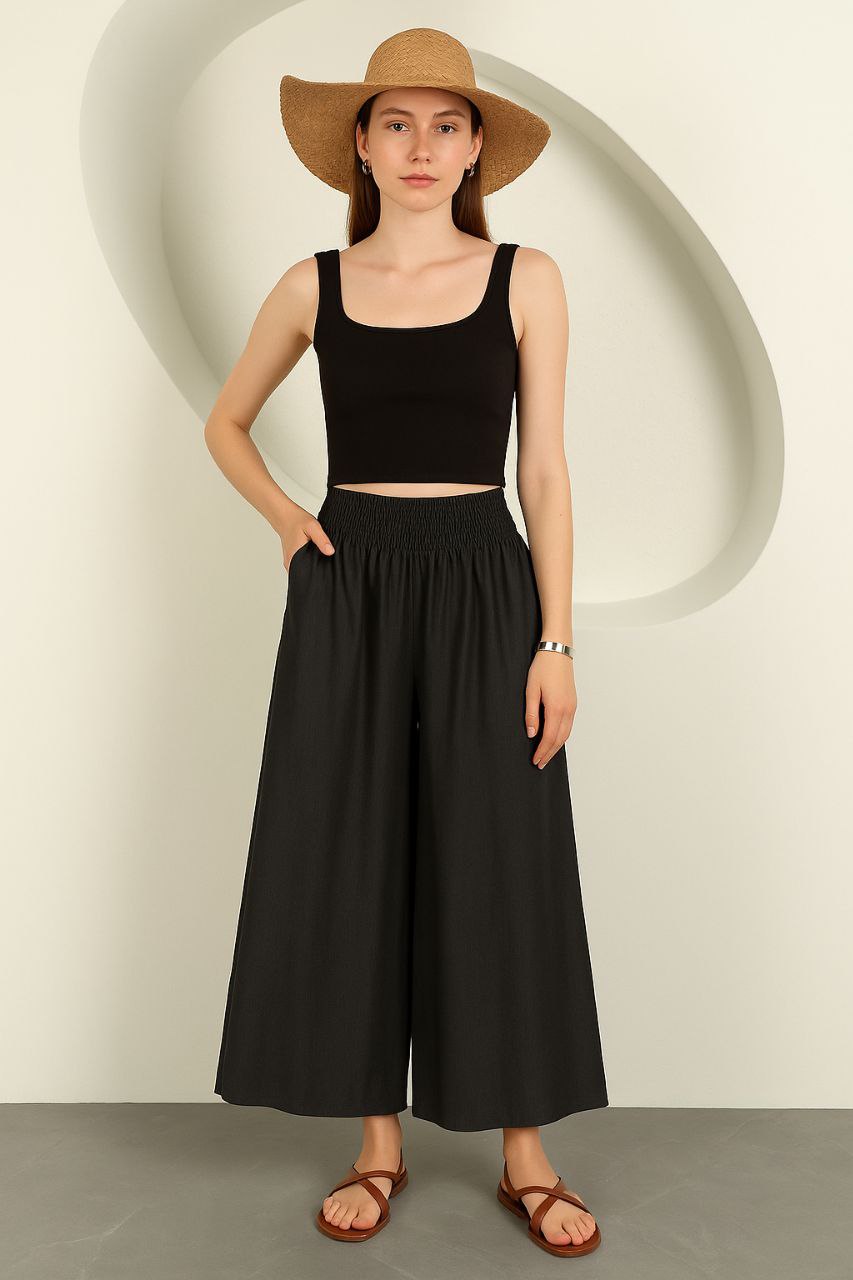 Tu veux une pièce facile à enfiler, qui t'accompagne du boulot à un souper entre amies ? Ce pantalon jupe-culotte est parfait. Léger et fluide, il bouge avec toi sans te serrer. Idéal pour toutes les occasions, sans compromis.