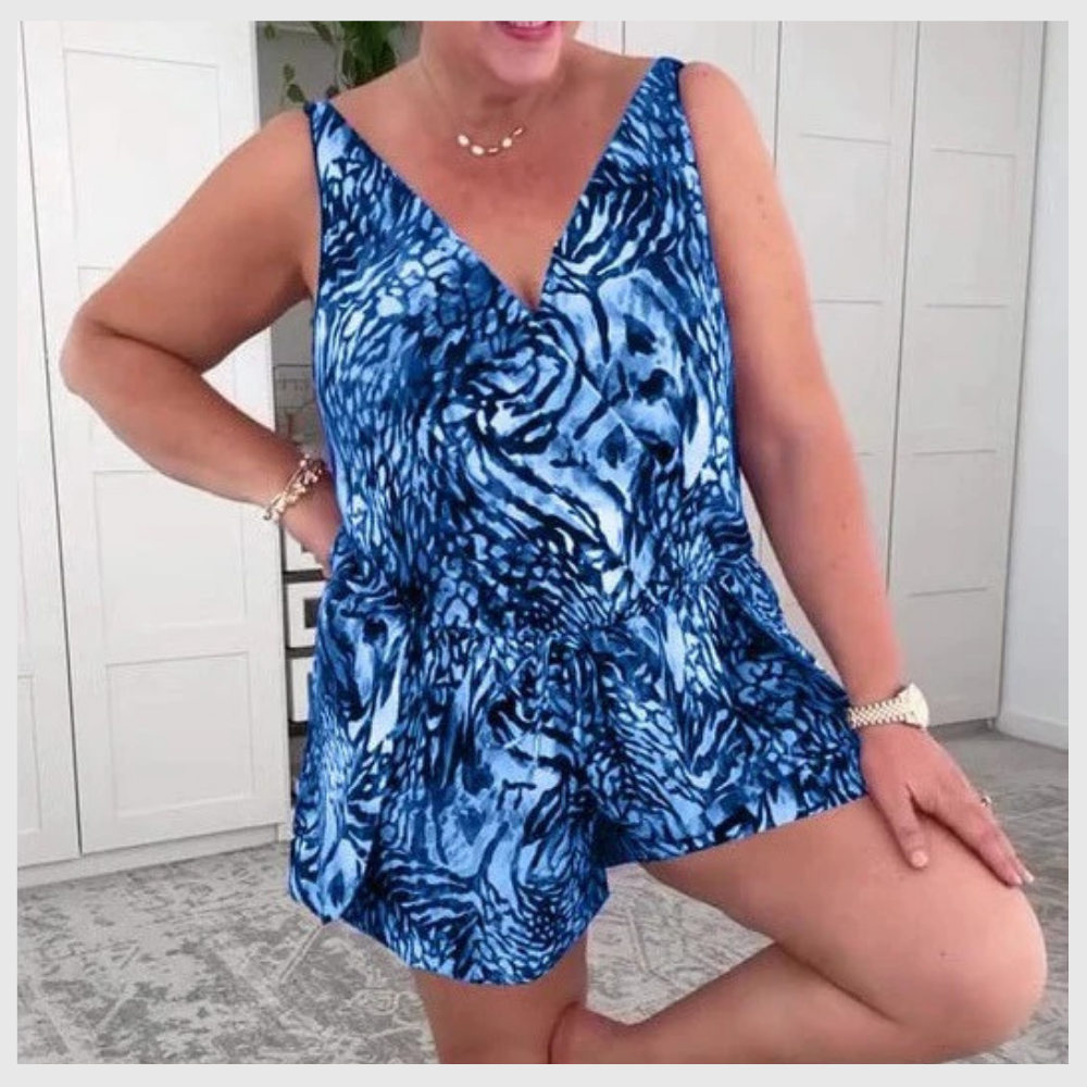 Maillot de Bain Imprimé Sans Manches à Col en V – Confort et Style Éclatant