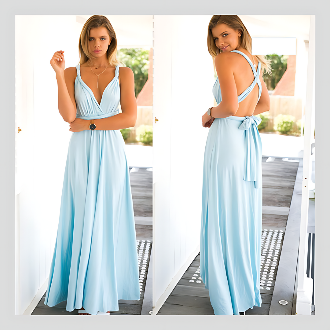 L'Infinity Chic vous offre une flexibilité sans précédent avec ses multiples façons de la porter. Que vous préfériez une épaule dénudée, un col en V classique ou un style ceinturé, cette robe s'adapte à toutes vos envies. Chaque variante met en valeur votre silhouette et vous permet de briller avec élégance à chaque occasion. Exprimez votre créativité et transformez votre look en quelques gestes simples.