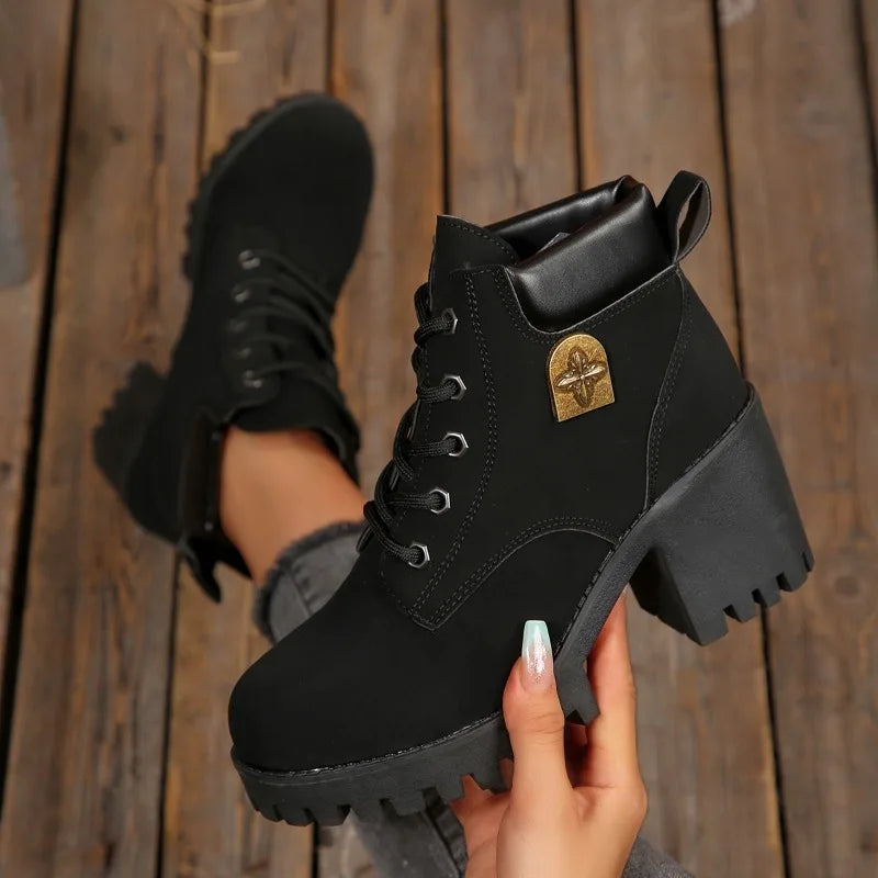 Les bottines Velvira™ allient style vintage et confort absolu. Leur talon bloc stable, leur plateforme douce et leur finition raffinée en font le choix parfait pour les Québécoises qui aiment rester chic sans se fatiguer.