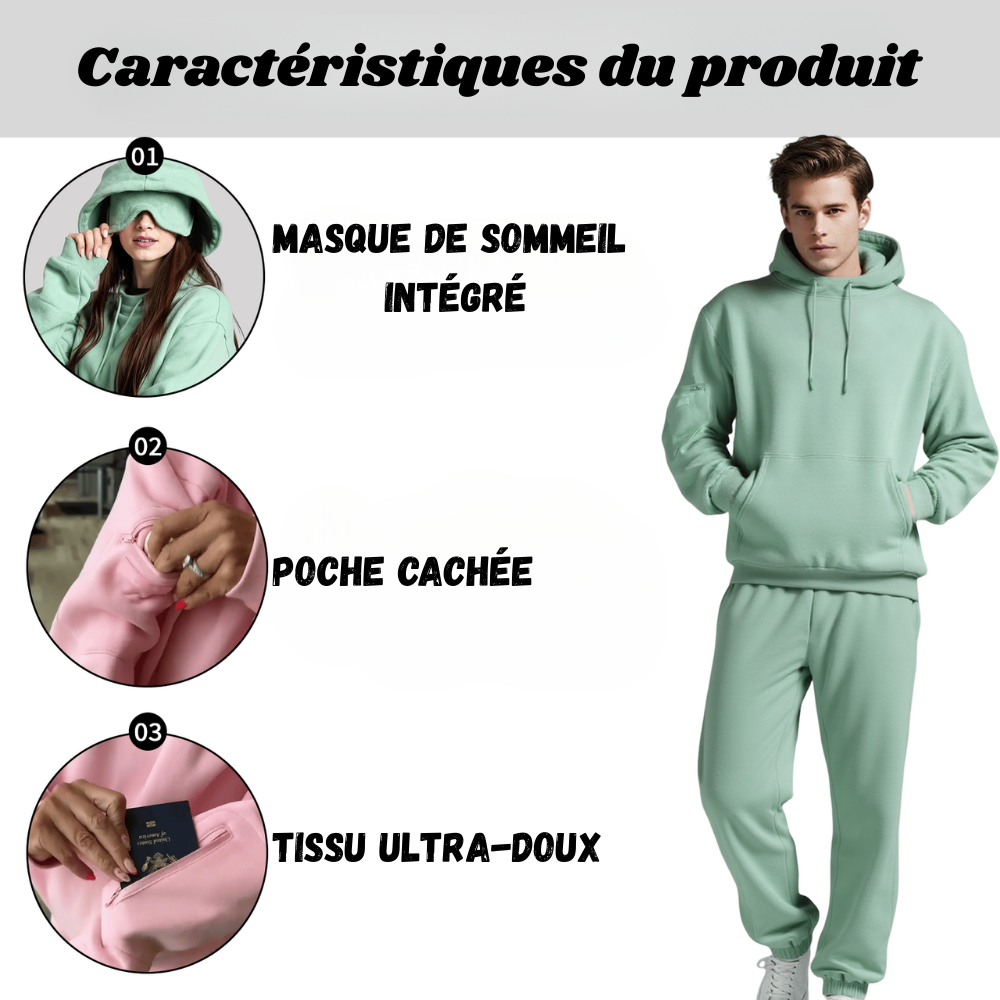 ZenVoyage™ – Sweat à capuche Chic avec masque pour les yeux de voyage
